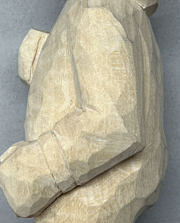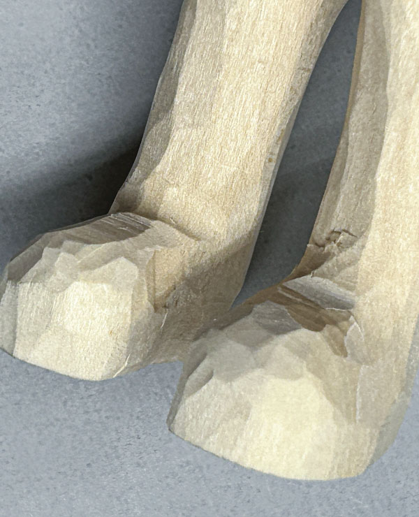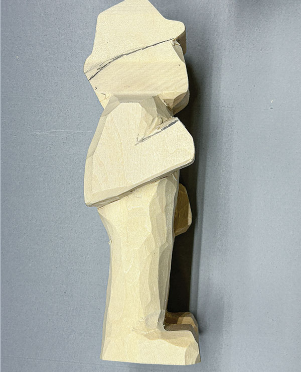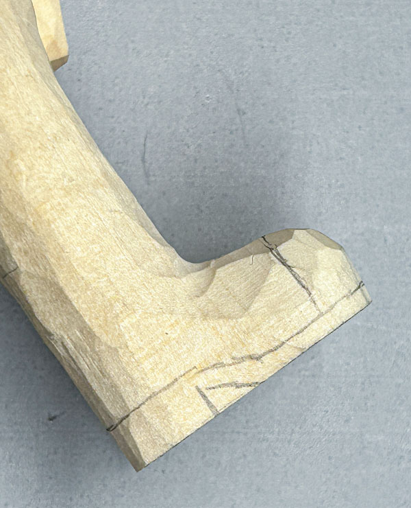 Step 2Refine the basic shape. With the carving knife, round the corners of the blank to make it easier to hold. Then start rounding the legs and boots. |