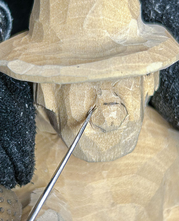 TIP: GETTING NOSYTo carve the nostrils symmetrically, I draw a line across the nose, and then use that as a starting point. This way, there’s a good chance that both nostrils will be the same height. |