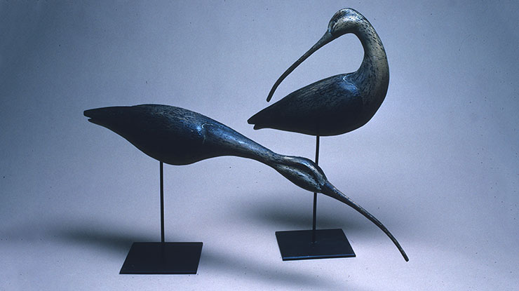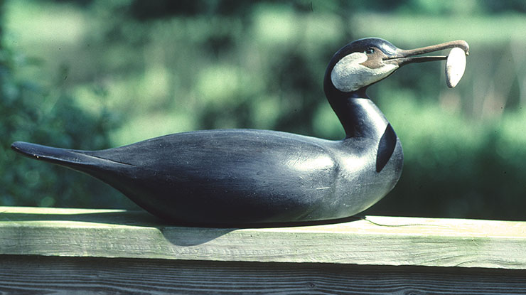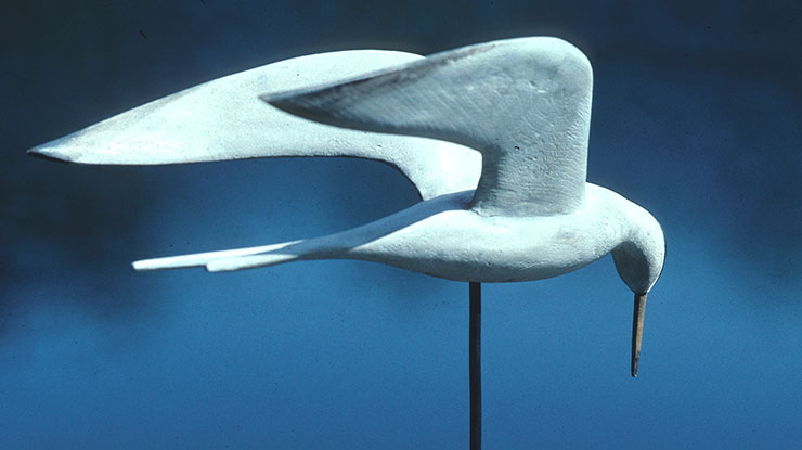 Bob lives on Hunting Creek on Virginia’s Eastern Shore near the Chesapeake Bay. He began carving 20 years ago when he began collecting antique hunting decoys. Bob enjoys the weathered patina of old decoys, and attempts to replicate it in modern carvings. Bob admits that early in his career he used the wheelchair to get noticed and to stand out from the legion of bird carvers who attended the art shows and carving competitions. “It helped people remember me,” he said.