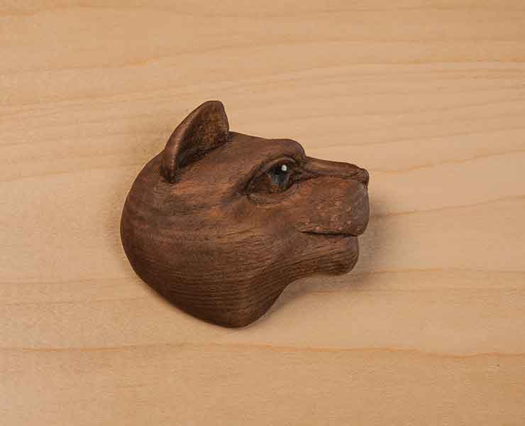 Using a Natural FinishI carved this panther from butternut, applied a walnut stain, and finished it with Danish oil. To make the eye stand out, paint the pupil black and add a white highlight dot. |