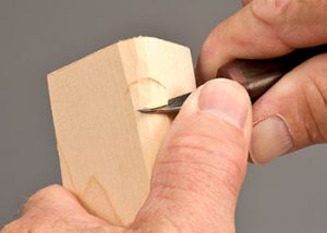 Step 1: Round the corner of the blank using a carving knife. Faces and eyes are not flat, so it’s best to start with a rounded blank.