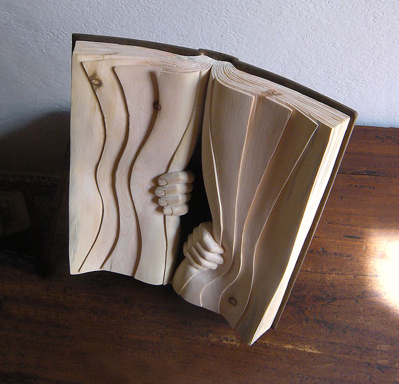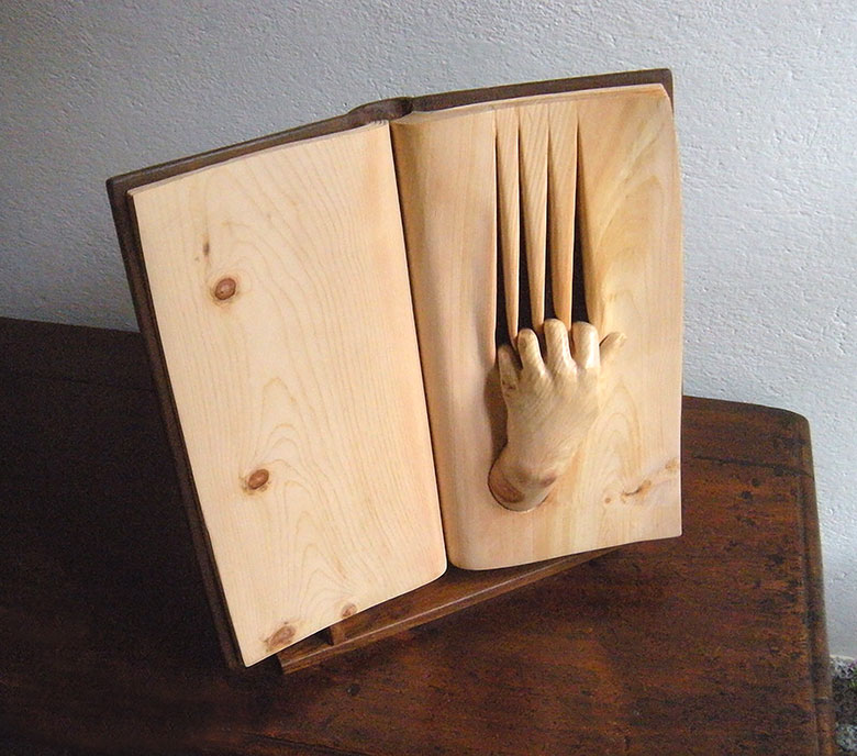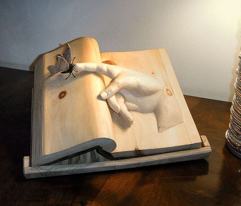 Nino Orlandi cannot say for certain if it was his love of books or his passion for woodcarving that inspired his series of wooden book sculptures. Either way, this self-taught artist combined talent and imagination to create unique and enchanting sculptures.