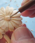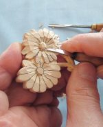 I like to carve seasonal pins. I can usually carve them in one sitting, and folks love to wear them. I always associate daisies with summer, so they make a great pin for warmer weather.