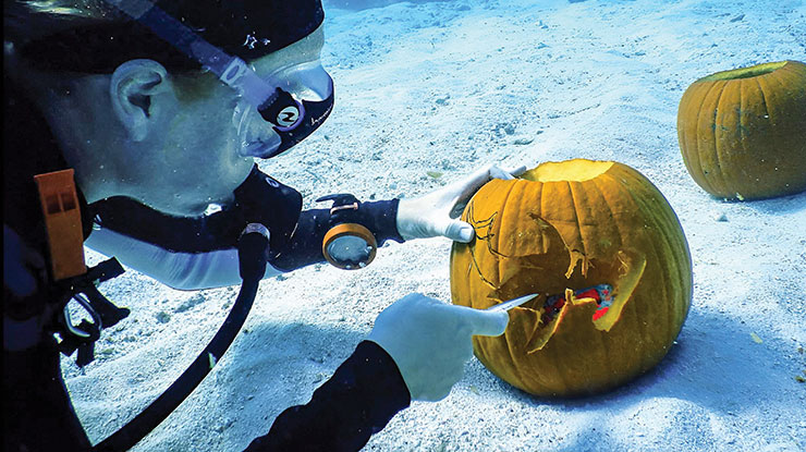 Scuba divers compete in a decades-old pumpkin carving contest in the Florida Keys By Kelly…