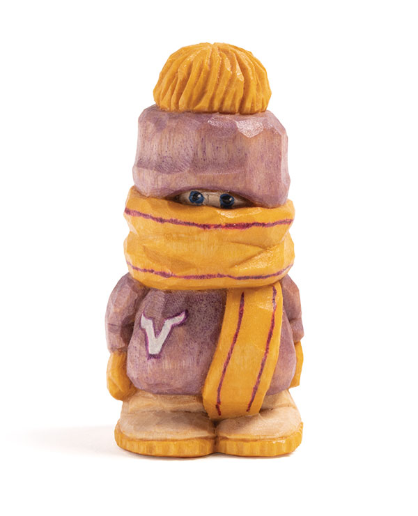 It’s football season again and this guy from the Land of 10,000 Lakes is ready for the weather. This character has uncomplicated lines that make him a great beginner project. More advanced carvers can switch him up. Move his scarf down and hat up to add facial features. Create fringe on the scarf, texture the hat, and put pockets on his jacket. However you decide to carve him, be sure to finish him with your team’s colors.