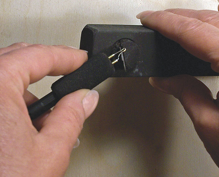 As you work with any woodburning tool, carbon deposits will build up on the tip. The hotter the temperature, the quicker the deposits develop. This black buildup can be transferred to your work, causing dark gray or black streaks that cannot be removed. Heavy carbon deposits can also affect the temperature of the tool tip, causing the tip to cool below its normal heat setting. Unevenly burned lines that vary sharply in color or width are most often caused by a dirty tip.
