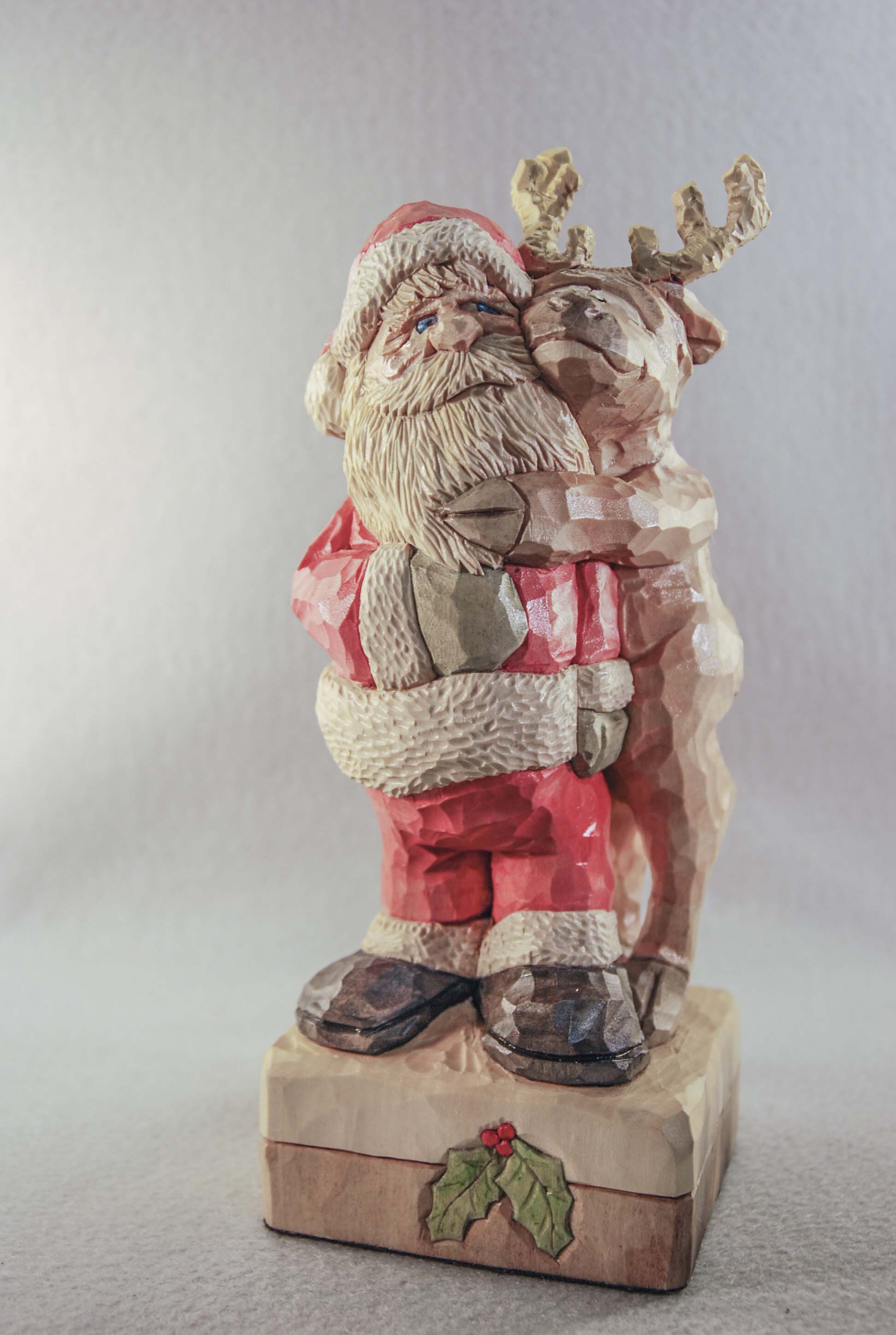 Among the many demonstrations taking place during the show were Gerry Shaw of Catawba Valley Woodcarvers with chip-carved Christmas ornaments; Scott Caskey showing how to make Turkey Friction Pots on a lathe and demonstrating how to select and cut logs to prepare for woodturning; Brian Pardue and Mike Violette of Carolina Scrollers showing intarsia and fretwork; Randy Everett making art with his chainsaw; and Michele Parsons teaching pyrography.