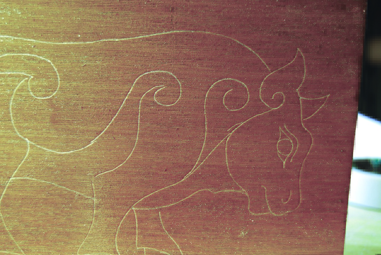 The design we’ll use in this demonstration is based on the “Burghead Bull,” one of the enigmatic stone carvings left by the Picts. The Picts were the indigenous tribes of what is now Scotland. We have only anecdotal evidence of the Picts for they left no written word and only a few carvings. The Burghead Bull is a beautiful 7th century AD example of the early Pictish incised style in which the lines of the design are simply pecked into the stone surface.