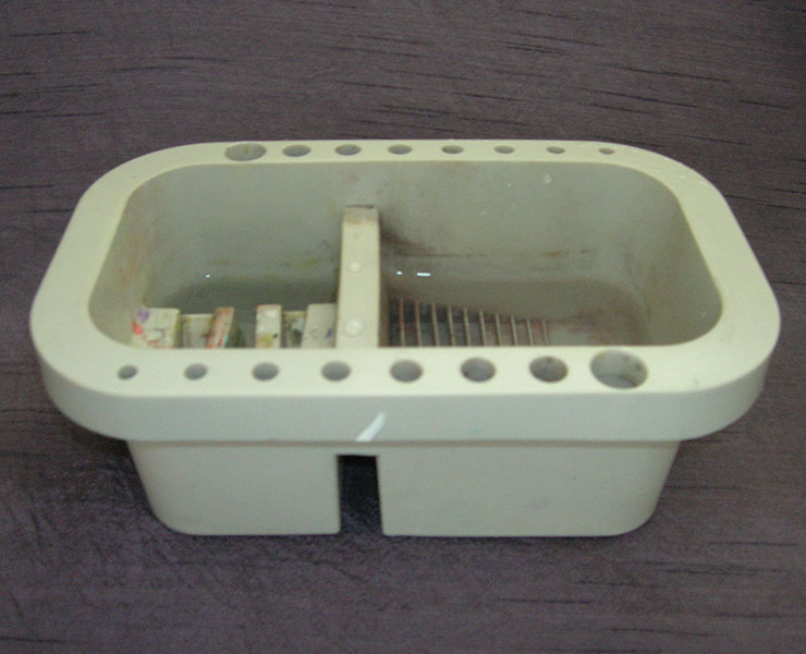 Containers for WaterYou’ll need two water containers; one to rinse the paint from your brush and the other to pick up water as you paint. Dirty water will change the color of your paint, so keep this container clean. A useful addition to your painting supplies is a brush basin that is divided into two sections with ridges in the bottom. Gently stroke brushes across the ridges to get all of the paint out. |