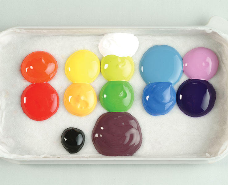 Distilled Water in a Squeeze BottleUse distilled water if storing your palette of colors in a closed container for any length of time. Some tap water contains mold that may grow and contaminate the paint. |