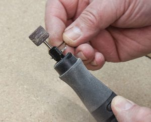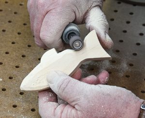 The handpiece has a comfortable ergonomic design with a soft-textured rubber grip. There’s plenty of power in the brushless motor, which allows for speeds from 5,000 to 35,000 RPM. We used several carving bits on pine and walnut blanks, and the tool performed well. The universal 1/8″ (3mm) collet holds any brand of rotary accessories.
