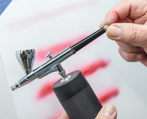 No noisy, bulky compressor or hose needed with the MakerX airbrush! The airbrush pen mounts directly onto a lightweight canister-type compressor that provdes 14-18 psi of air pressure. It also doubles as a comfortable handle for the brush, and solidly supports the unit upright when not in use. The pen itself is a high-quality tool that rivals those from well-known airbrush manufacturers.