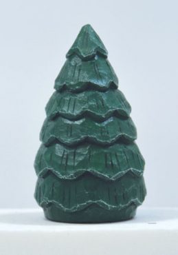 Paint the entire tree with Delta Ceramcoat hunter green acrylic paint. When the paint is dry, dry-brush a few accents onto the edges of the boughs and the top of the tree with Americana white acrylic paint. After the paint is dry, seal the carving with matte varnish.