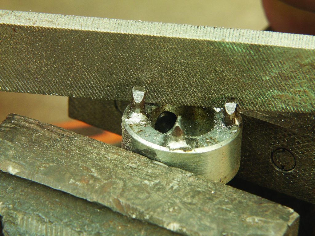 5. File the ends of the rods to a sharp edge of about 30°. This spur-center is designed for small projects.