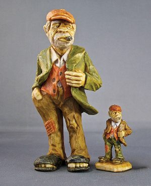 The rule of three is an easy way to envision a human figure in a block of wood before and during the carving process. All human figures have the same basic elements. These elements need to be in proportion to avoid creating a carving that looks distorted. The rule of three is a simple guideline to keep human figure carving in proper perspective and proportion. After learning about the rule of three, try the technique out on the hobo caricature below or a magical wizard from issue #64.