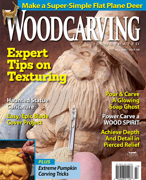 The Fall 2024 issue of Woodcarving Illustrated includes a variety of projects, patterns, and features, as well as interesting techniques. This issue is a part of the regular magazine subscription. It is also available from your favorite retailer or from Fox Chapel Publishing, foxchapelpublishing.com or 1-800-457-9112.
