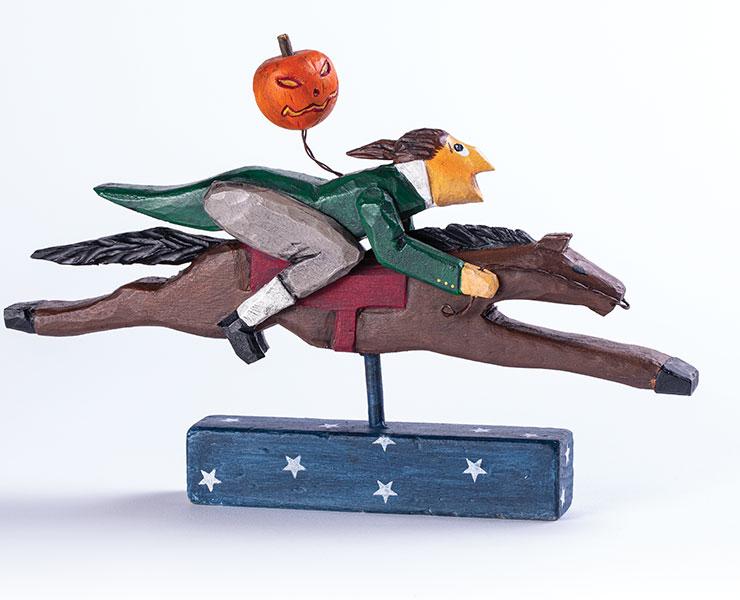 Carve and stylize a folk-art figurine that looks like a rustic heirloom