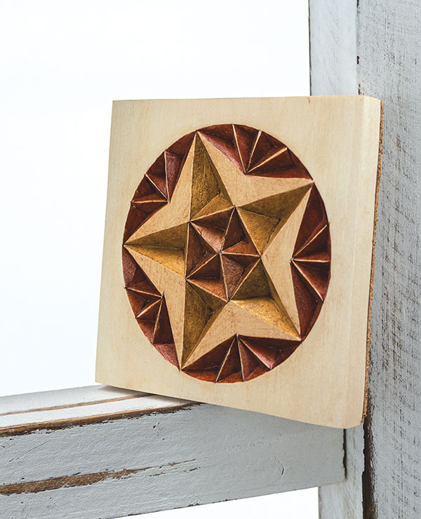 Acrylic paint and gel stain add flair to an easy chip-carved coaster